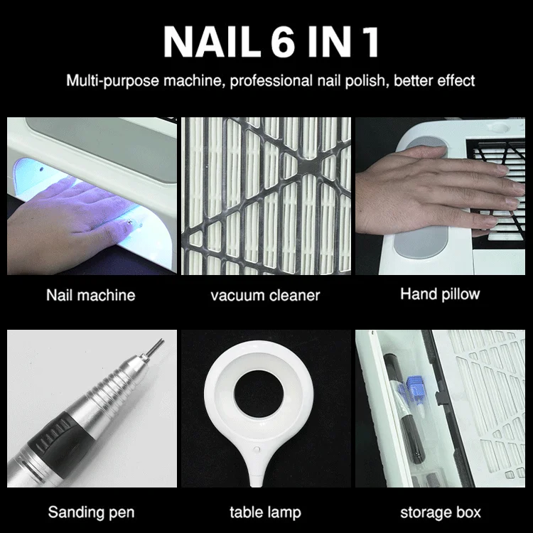 6 in 1 nail dust collector nail drill UV led lamp hand rest pillow |